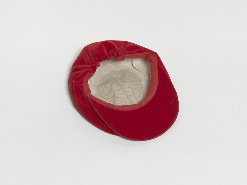 Cinzia Ruggeri, Coppola cervello, 1990s, Collage on velvet hat, 5 x 23 x 28 cm