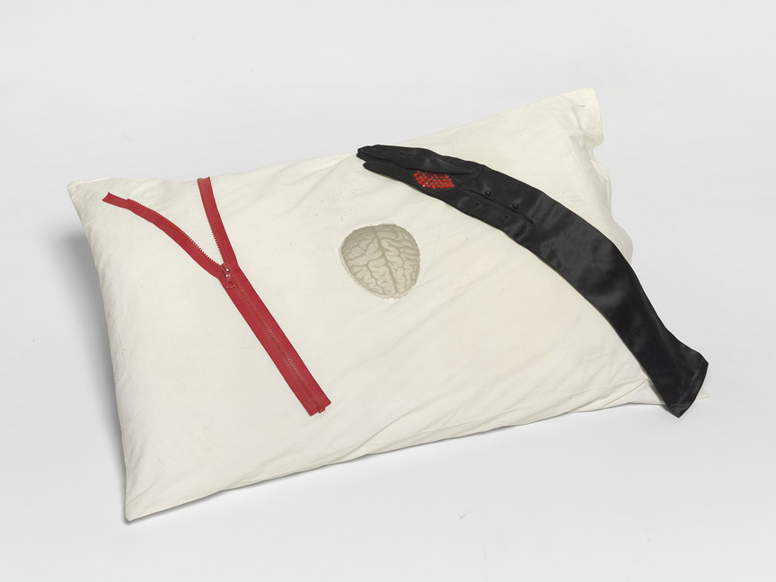 Cinzia Ruggeri, Cuscino, 2015, Collage on pillow, 12 x 50 x 77 cm