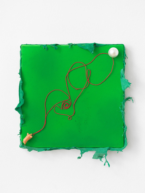 Cinzia Ruggeri, Perla al porco, 2018, Collage on canvas, 20 x 20 x 4 cm