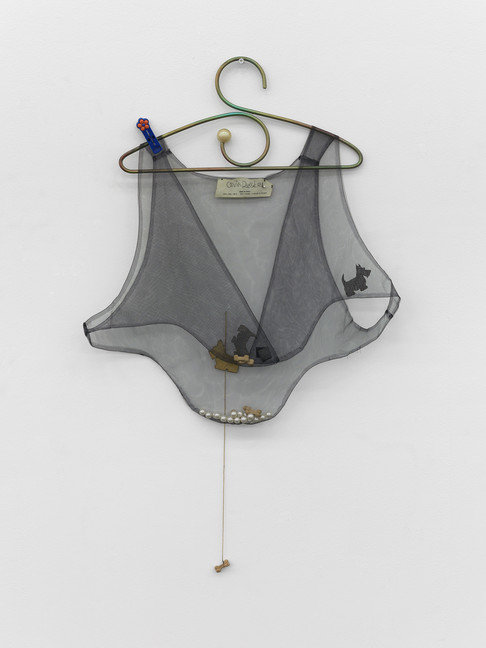 Cinzia Ruggeri, Gilet con cagnetti e perle, 1989–1990, Gilet with synthetic bones and pearls, artist hanger, 88 x 49 x 5 cm