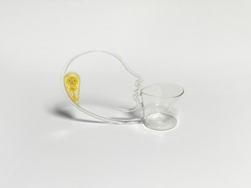 Cinzia Ruggeri, Bicchiere vis-à-vis, 2005, Glass, plastic dispenser, 20.5 x 28 x 7.5 cm