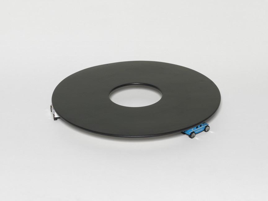 Cinzia Ruggeri, Indianapolis, 1990s, Porcelain, plastic cars, 4 x 44.5 x 44.5 cm